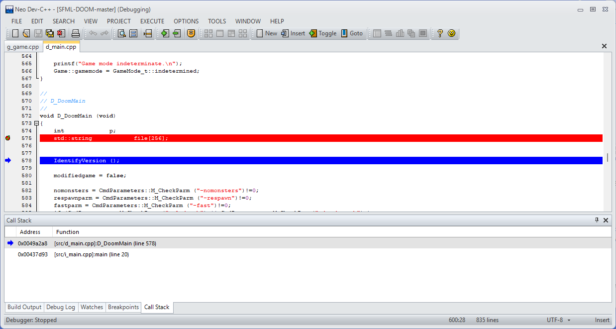 Breakpoints and watches are also kept between sessions as Neo has support for project and user configuration files.